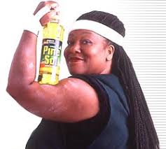 As you can see she looks very masculine and athletic in this ad. She is showing how strong pine-sol really is. Which makes perfect sense. But now here is a more recent ad: